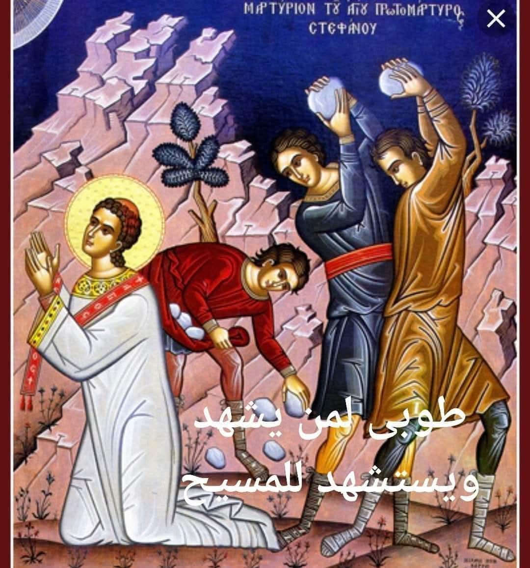 معنى استفانوس :أكليل من الزهور وهو من السبعة رجال المنتخبين عن طريق الرسل بوضع اليد.... وكان فيلسوفا" يهوديا" ذات ثقافة يونانية أي أكمل الحكمة العالمية بالحكمة السماوية... وهو أول شهيد في المسيحية وسبق الرسل أنفسهم رغم أن إيمانه لم يكن قد مضى عليه سوى أشهر ولكنه جاء بثمر كثير لأنه كان سببا" في انتشار بذار الإيمان في كل أنحاء العالم بسبب الإضطهاد الذي لاقته الكنيسة بعد استشهاده... ونجد باستشهاده نقاطا" مشتركة بينه وبين سيده... التهمة (الأثنان التجديف والتنبؤ عن خراب الهيكل... أحضروا لهم شهود زور... الشعب هاجوا يطلبون رجمه كما هاج الشعب يطلبون صلب المسيح... أخرجوه خارج المحلة كذلك السيد الرب.. طلب الغفران لراجميه كذلك الرب طلب لصالبيه)