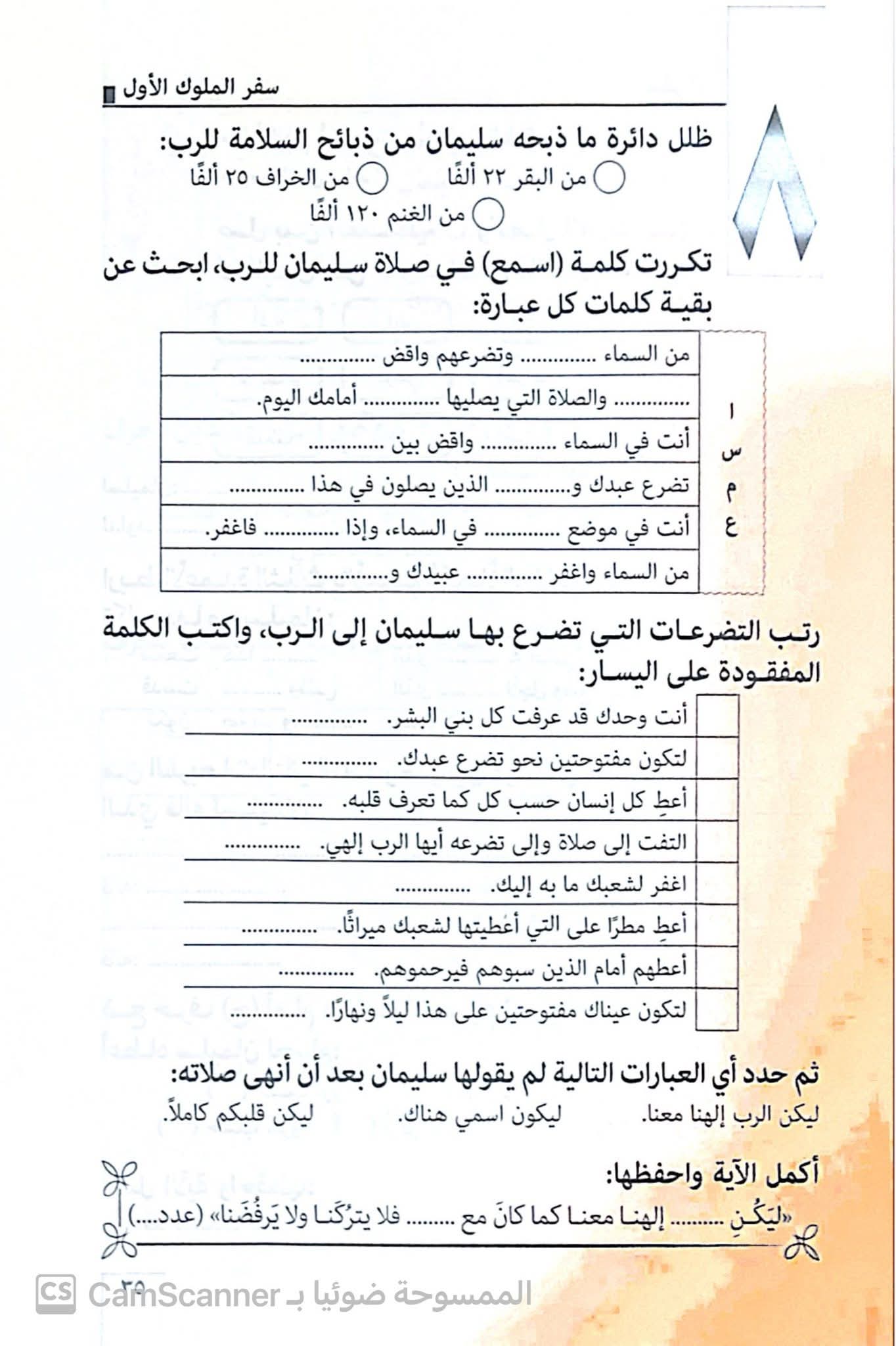 و سليمان وقف و رفع يديه و صلّى قدام الشعب صلاة رائعة فيها التالي: