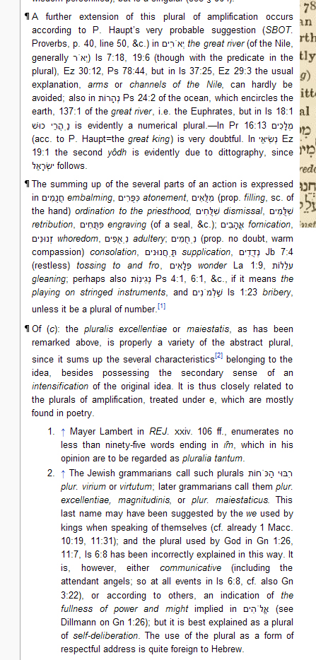 حضرتك يعنى معنى كده أن مصطلحات مثل "pluralis excellentiae" و "pluralis majestaticus" مكانتش مستعملة قبل القرن التاسع عشر أساسا !! و اللى حاجج بيها هو يهودى أسمه جيسينيوس ليه بقى ؟؟؟ علشان يضرب المسيحية !