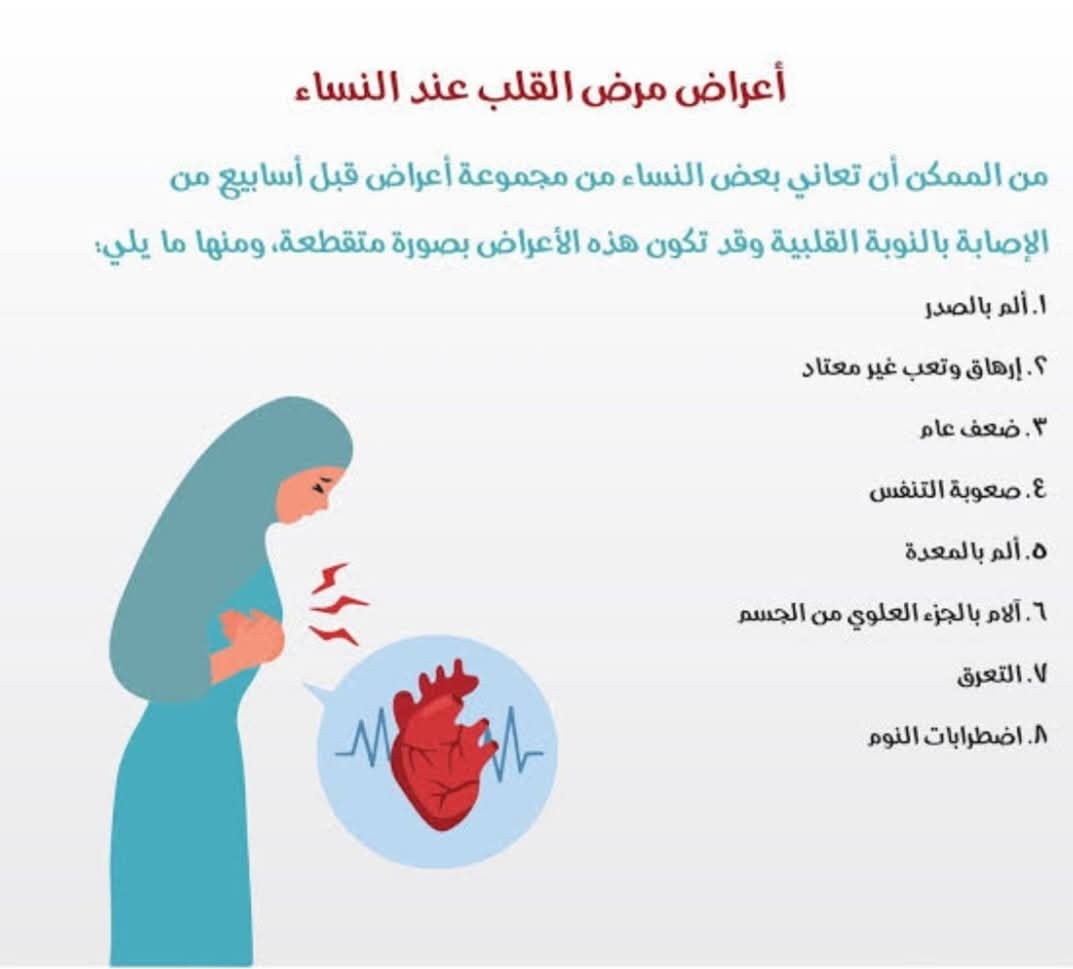 هناك أعراض إضافية لنوبة قلبية قد تعاني منها النساء فوق سن الخمسين تشمل هذه الأعراض: