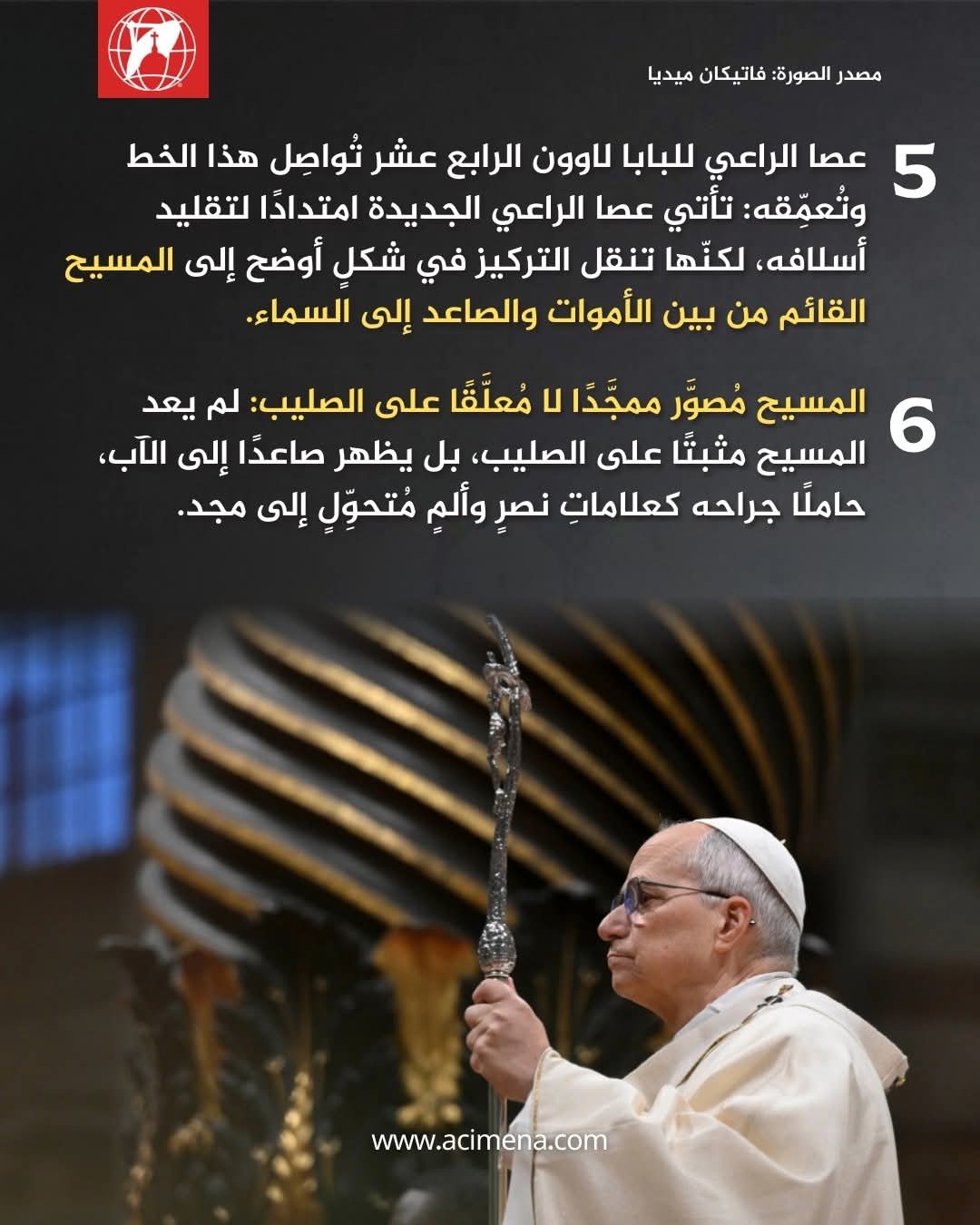 بالصور | ماذا نعرف عن عصا الراعي البابويّة الجديدة للبابا لاوون؟