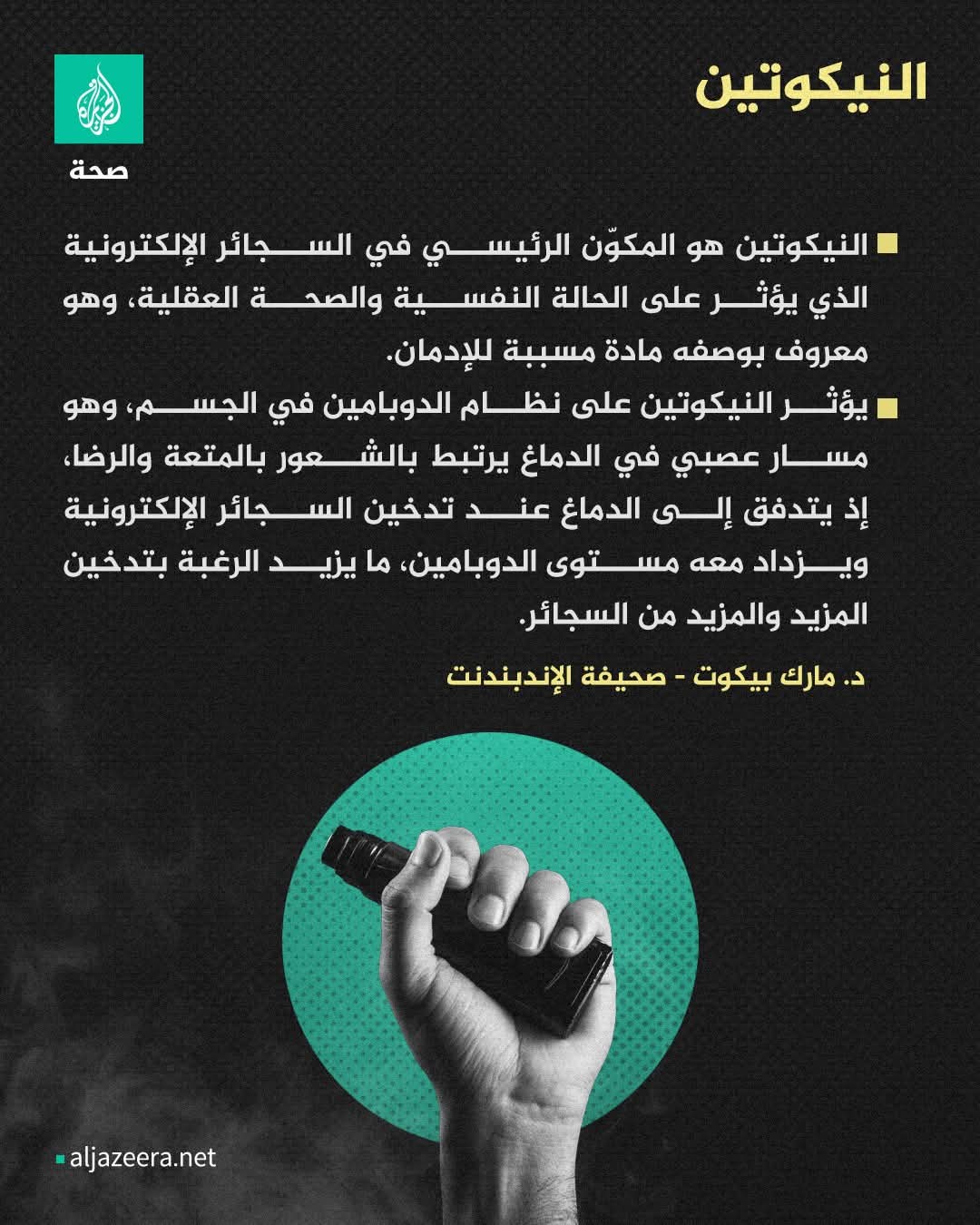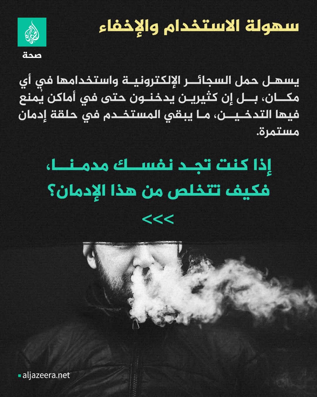 مثلما يصعب التخلص من إدمان السجائر التقليدية، فإن السجائر الإلكترونية أيضا لا تقلّ صعوبة في الإقلاع عنها، وذلك لارتباطها بعدة أسباب. فما أهمها؟ وكيف يمكن، ببعض الخطوات، تقليل الإدمان أو التخلص منه؟