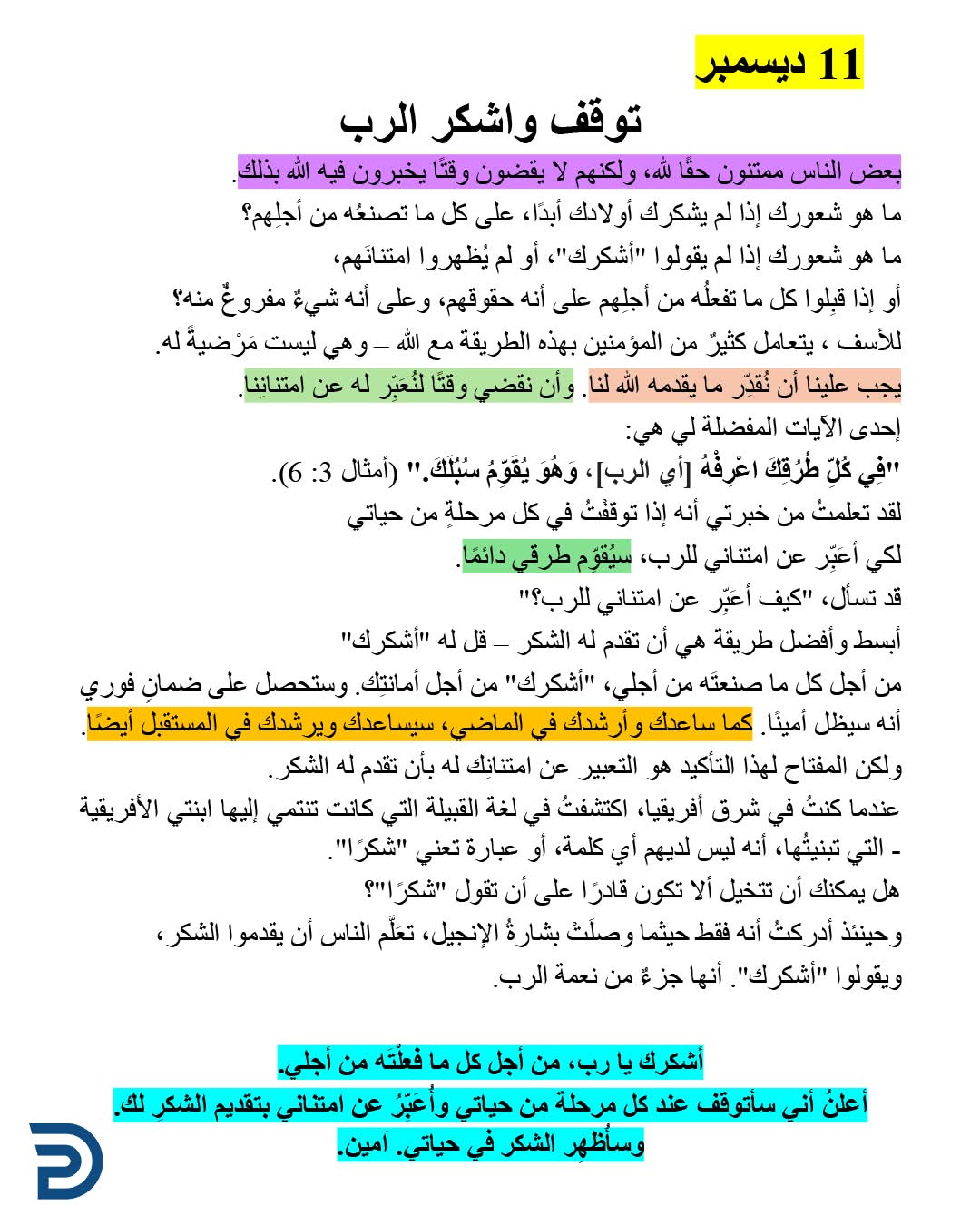 ١١ ديسمبر....توقف واشكر الرب