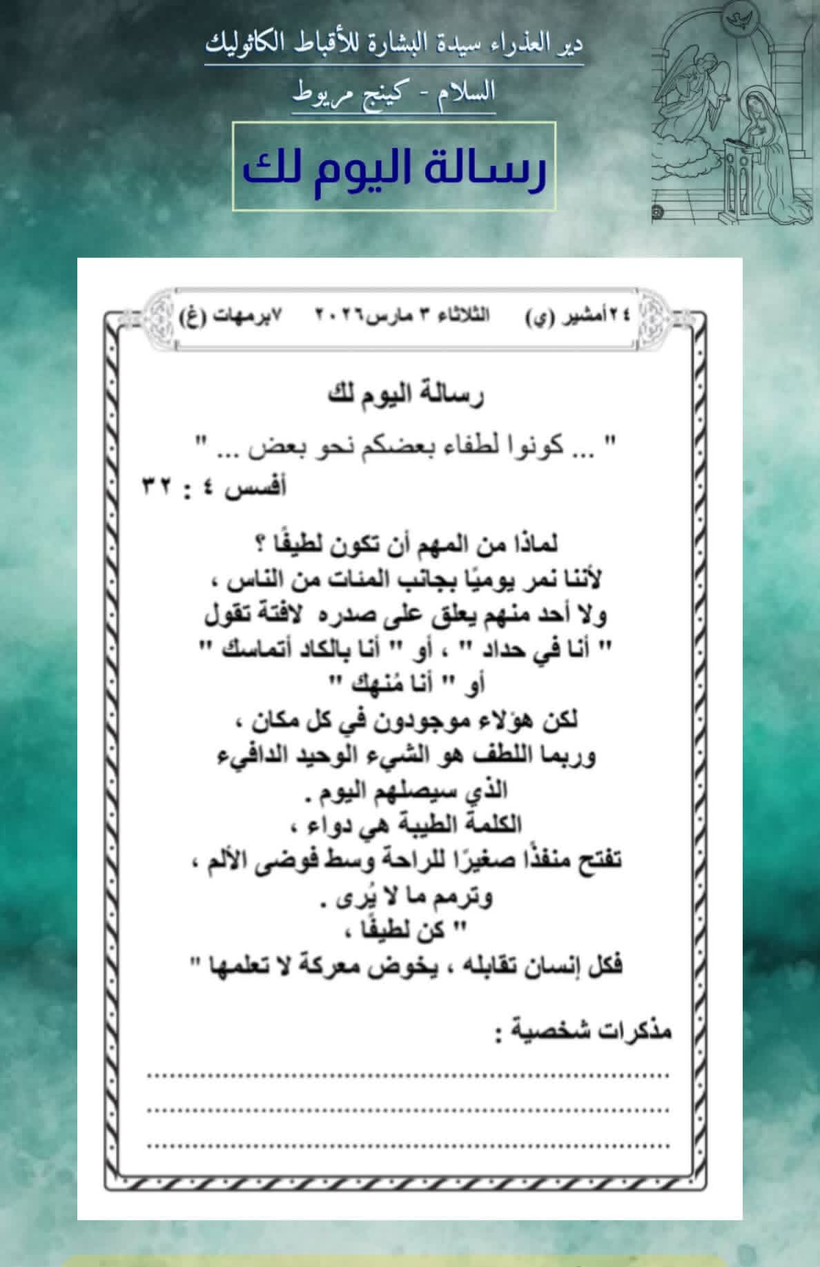 _اليوم الثلاثاء ٣ مارس ٢٠٢٦ #رسالة_اليوم_لك 🤍
